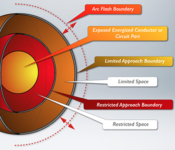 The NFPA 70E defines three boundaries for electrical workers to observe. Two boundaries deal specifically with shock hazards and are intended to prevent shock and electrocution. The third boundary is the arc flash boundary. The arc flash boundary has a primary purpose of preventing burn injury due to arc flash incidents.